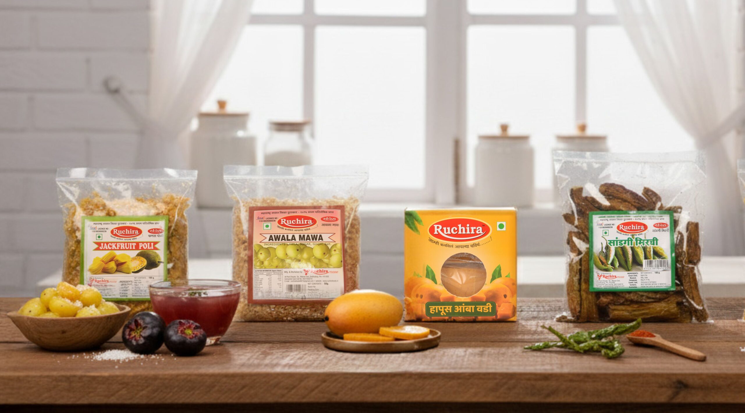 Ruchira Foods, rooted in the rich bounty of Konkan, transforms Alphonso mangoes, cashews, jamuns, jackfruits, kokam, amlas, pineapples and more into pure, wholesome delights, blending tradition, nutrition and authentic taste.