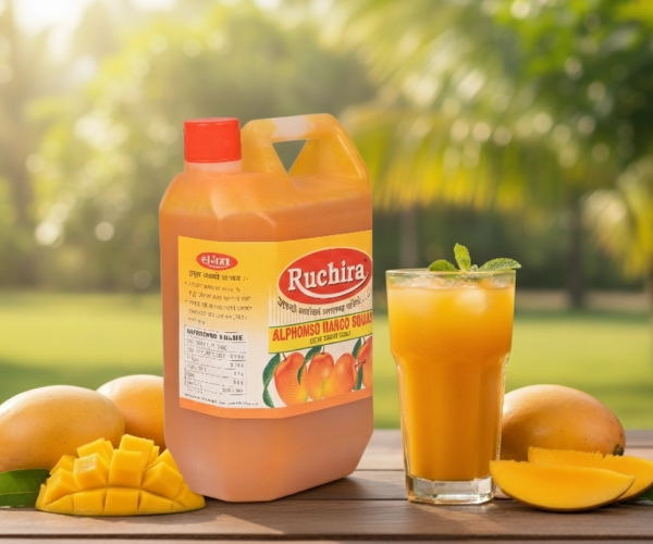 Ruchira’s Alphonso Mango Squash is made from handpicked Alphonso mangoes (king of Mangoes) from the Konkan region, known for rich taste and natural sweetness. It not only works as a versatile and delightful beverage but also adds a boost to ice creams, yogurts, mocktails, puddings and jams. Enjoy the goodness of Konkan’s Alphonso mangoes in every bottle, packed with intense aroma, rich flavour and natural sweetness, anytime, anywhere.