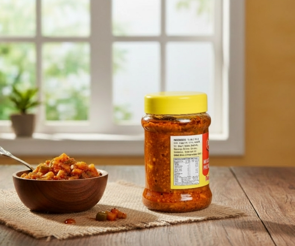Enjoy a medley of flavours with Ruchira’s Mixed Pickle, combining vegetables and fruits in a tangy, spicy blend. Mixed Pickle brings spice and tang to your plate. From mangoes to lemons, carrots to chillies, this pickle is a celebration of flavours. Perfect for pairing with curries, dal-rice, parathas and even bread, this homemade-style pickle bursts with zest and tang. It’s a perfect blend of sour, spicy and salty notes that awakens your taste buds. A true delight for pickle lovers. A must-have in your kitchen.